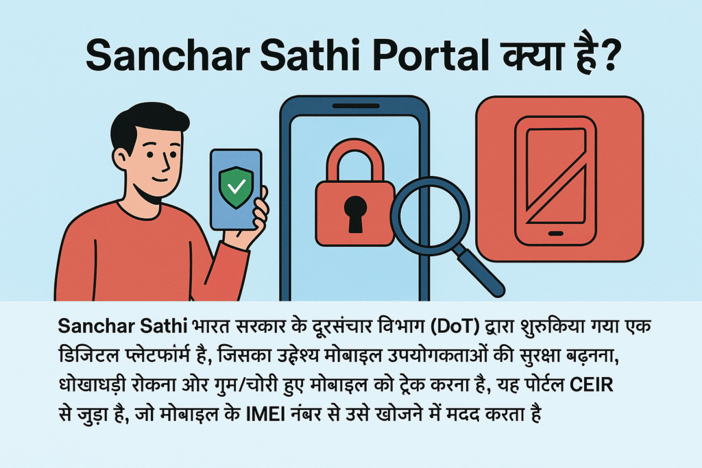 Sanchar Sathi भारत सरकार के दूरसंचार विभाग (DoT) द्वारा शुरू किया गया एक डिजिटल प्लेटफॉर्म है, जिसका उद्देश्य मोबाइल उपयोगकर्ताओं की सुरक्षा बढ़ाना, धोखाधड़ी रोकना और गुम/ चोरी हुए मोबाइल को ट्रैक करना है। यह पोर्टल CEIR (Central Equipment Identity Register) से जुड़ा है, जो मोबाइल के IMEI नंबर से उसे खोजने में मदद करता है।