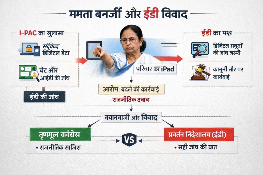 इसी मुद्दे को लेकर ईडी और पश्चिम बंगाल की मुख्यमंत्री ममता बनर्जी के बीच तीखी बयानबाज़ी भी देखने को मिली। ममता बनर्जी ने खुलकर आरोप लगाया कि केंद्रीय एजेंसियों का इस्तेमाल राजनीतिक बदले की भावना से किया जा रहा है और विपक्षी नेताओं को डराने की कोशिश हो रही है। दूसरी ओर, ईडी और केंद्र का कहना है कि कानून सभी के लिए समान है और जांच को राजनीति से जोड़ना गलत है। कुल मिलाकर यह पूरा मामला जांच, राजनीति और आरोप-प्रत्यारोप के बीच फंसा हुआ है, जिस पर अंतिम तस्वीर जांच और न्यायिक प्रक्रिया पूरी होने के बाद ही साफ हो पाएगी।